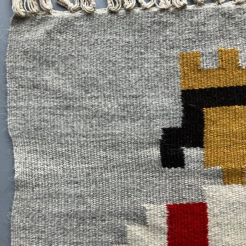 Vintage Håndlaget Billedvev / Veggteppe / Løper Ull 38x40 cm