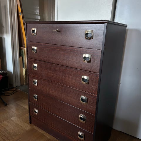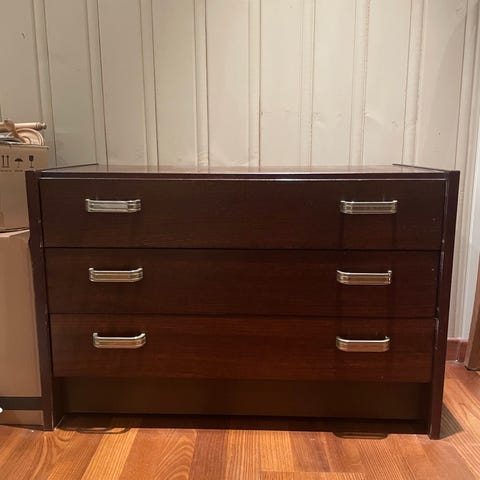 Eldre kommode som er malt svart