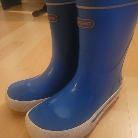 Viking gummistøvler for barn i størrelse 24. Modellen er unisex og har blå overdel. Egnet til bruk i regn og vått vær for både jenter og gutter.