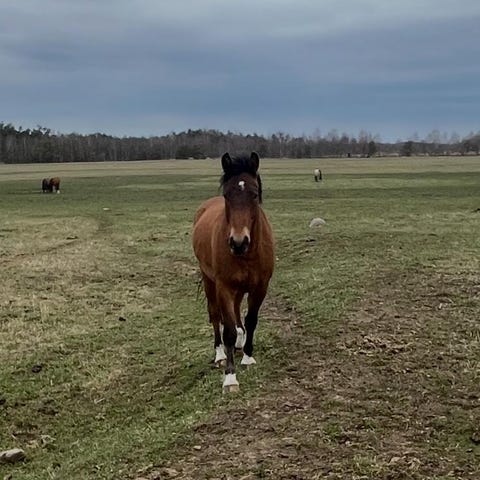 Hesten er i Estland, på Saaremaa, hos oppdretteren.