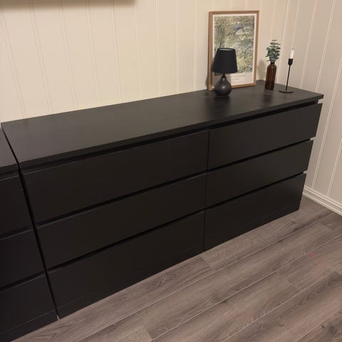 Kommode 6 skuffer, brunsvart, 140x40x72 cm