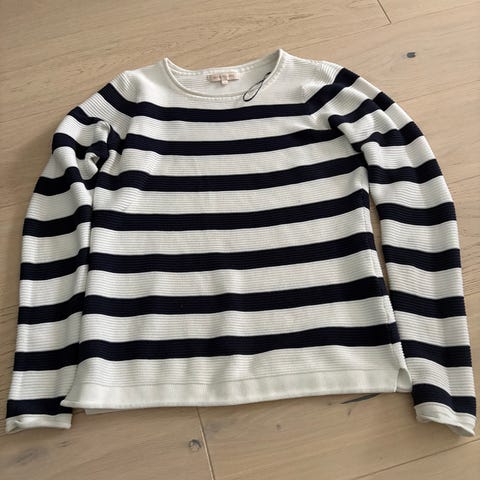Marie Philippe genser for dame i størrelse M. Genseren er beige. Den har rund hals, lange ermer og ribbestrikkede kanter på hals, ermer og nederkant. Passer til hverdagsbruk og kan kombineres med både bukser og skjørt.