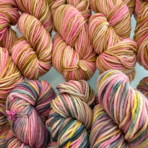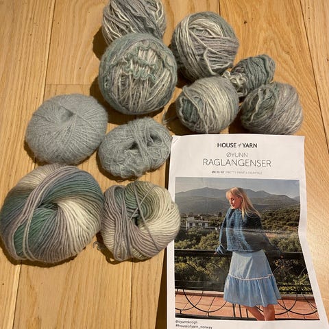 Garnpakke til PetiteKnit Celeste Sweater med Sandnes garn Peer Gynt i flere farger. Garnet kommer i nøster i lyse naturtoner, rosa, mørk brun og mørk rosa, egnet til å strikke Celeste-genseren fra PetiteKnit eller andre plagg og tilbehør. Pakken innehar nok garn til å strikke str. XL.