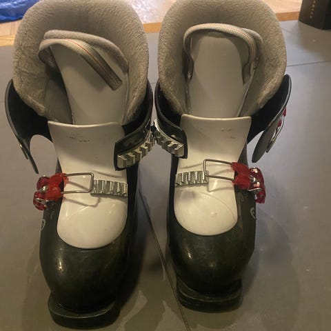 Head Frost alpinstøvler for barn i svart og hvit plast med grå innerstøvel. Støvlene har flere justerbare spenner i metall for god tilpasning rundt fot og legg. Sålen har mønster for bedre feste ved gange. Egnet til alpint bruk for barn, med standard alpinsåle som passer vanlige alpinbindinger.