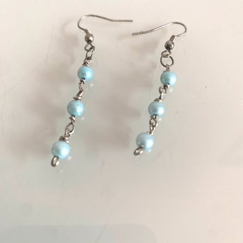 Øredobber stemplet 925 på kroken, håndlaget av syntetiske perler. Leveres med silikonstoppere og pose med snøring.