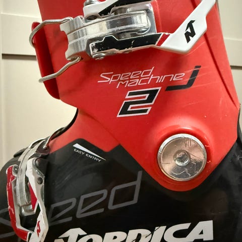Selger et par Nordica Speedmachine J2 alpinstøvler i størrelse 19.5 (mondopoint).