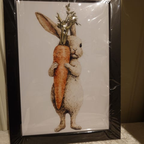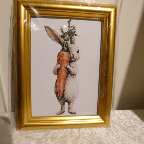 To nydelige påskeharer( gutt og jente) printet på fotopapir i svart ramme.