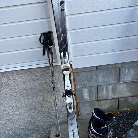 Alpinski med (carving) 170 cm, kun brukt et par ganger , wølki , selges komplett med sko str 43, og staver