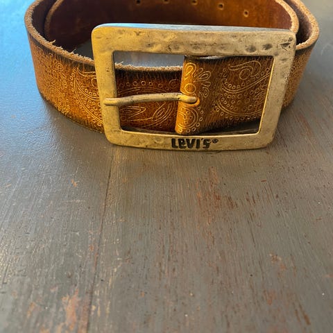Levi’s AB0330 belte for herre. Belte i fullnarvet skinn i brun farge med metallspenne i messingfarget tone. Størrelse er merket 85 cm / 34. Produsert i Italia. Egnet til bruk i bukser og jeans der et klassisk skinnbelte ønskes.