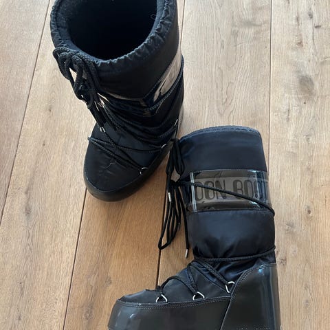 Str 39-41! Selger disse fine moonbootsene som jeg kjøpte på tise. Har aldri brukt de selv, og derfor selges de. Er brukt men fine enda! Mangler snøre øverst på ene skoen men det merkes ikke i bruk🥰 Evt kan man lett sette inn et snøre selv❤️