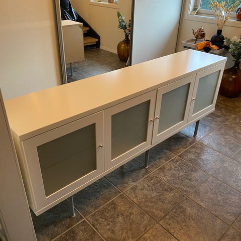 Møbelet består av to separate deler. Den ene delen er 77 cm lang. Den andre er 147 cm.