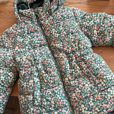 Ser man nøye etter så kan man se små bruksmerker på knappene, og på ribben ved hendene (små nupper). Dette går nok av med en nuppemaskin etter en vask. Ellers er jakken i tipp topp stand! Kun brukt til pent. Tjukk, fluffy og god, og skikkelig fin på. Raus størrelse, passer lenge. Merket med 104/110, 3-5 år ⭐️🍒💕