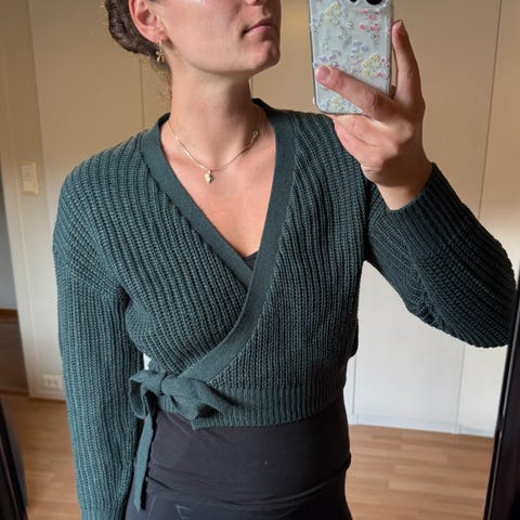ONLY cardigan for dame i størrelse M, men passer både S og L også. Cardiganen er grønn og har ribbestrikket struktur med knapper i front. Passer til hverdagsbruk og kan brukes over topper, skjorter eller kjoler for ekstra lag.