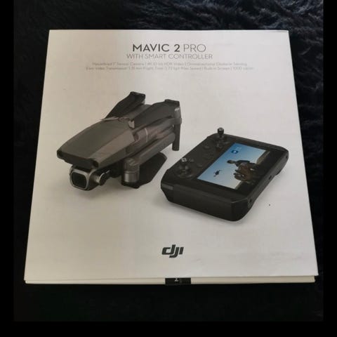 Pakke med DJI Mini 4 Pro drone, fjernkontroll, batterier,ekstra filter.