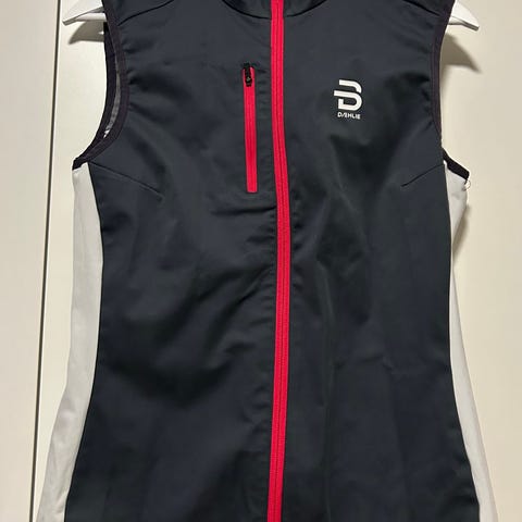Dæhlie løpevest i størrelse M. God og lett vest som er egnet til fysisk aktivitet, med refleksdetaljer (se bildet 4) for økt synlighet. Pent brukt, og oppleves som normal i størrelsen.