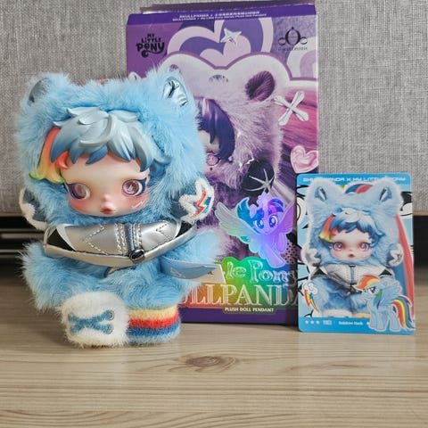 Utrolig vakre detaljer, 1 av 36 sjans å få denne flotte secret i den helt nye fantastiske serien til Skullpanda, med samarbeid med My Little pony og hestens år🌟🤩 Ny fin pose den ligger i og har esken. Selvfølgelig også det fine Shimmer Kortet🌟