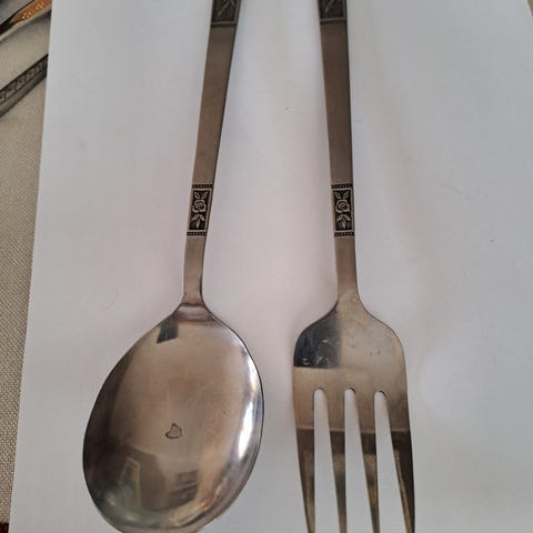 Søkeord: serveringsbestikk, rosemønster, floral, vintage, retro stålbestikk, Japan