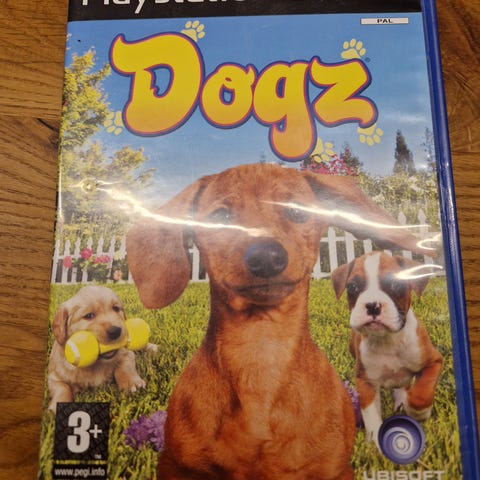 PlayStation 2 Dogz spill. Konsollspill for PlayStation 2 der spilleren tar vare på virtuelle hunder. Leveres på DVD-plate i original eske med omslag. Aldersmerking 3+ ifølge cover.