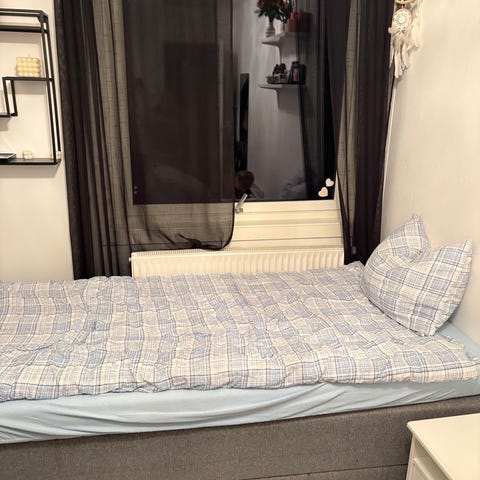 Sofa om dagen og seng for én – eller to – om natta. De to store skuffene gir mye plass til dyner, puter og sengetøy. En smart løsning når du bor på lite plass.