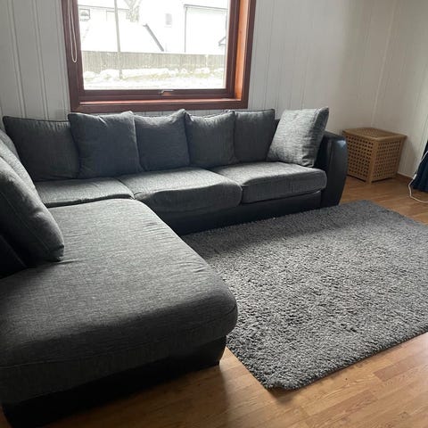 Brukt hjørnesofa med puff og 3 stk flyttbare nakkestøtter til salgs.