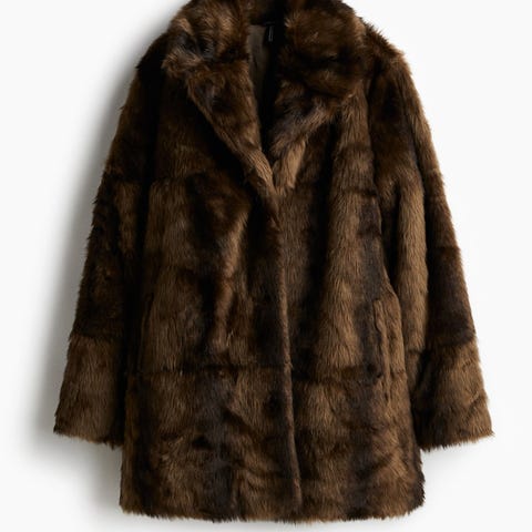H&M kåpe for dame i svart fuskepels i størrelse S. Kåpen har lengde til rundt kneet og er laget i myk fuskepels med glatt innside. Klassisk snitt med krage og lange ermer. kan kombineres med både hverdags- og penantrekk.