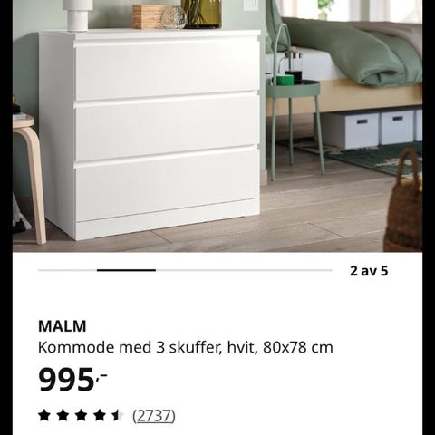 Kommode i farget sort tre fra IKEA. Smal beregnet for smykker og mindre gjenstander. Se bilde for mål. Planke mellom skuff 1 og 2 må festes på nytt da den er litt løs. Mindre synlige bruksmerker