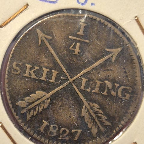 Sølvfrimerke - 1 penny oransje 1847 Mauritius, i 999s
