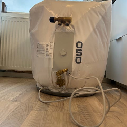 OSO Flexi F varmtvannsbereder med kapasitet på 80 liter i hvit utførelse. Kompakt modell egnet for mindre boliger, hytter eller steder med begrenset plass. Leveres med tilkoblingsslanger og ventiler som vist på bildene. Enheten er beregnet for fast installasjon av kvalifisert fagperson og tilkobles standard strøm- og vannopplegg i henhold til produsentens anvisninger på typeskiltet.