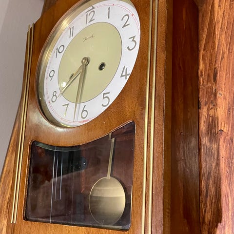 Urverk : Mekanisk 8 dagers verk med to opptrekk ( en for gang én for slag )