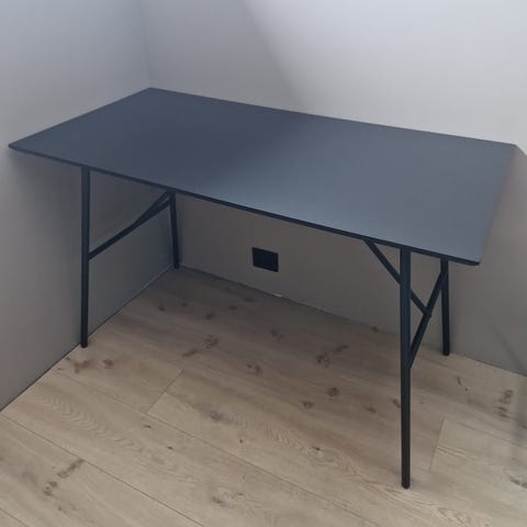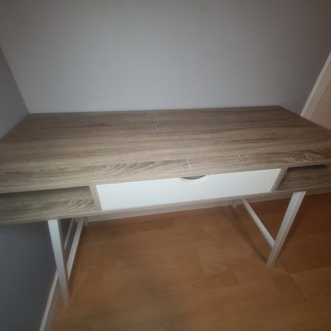 Pent skrivebord fra Jysk, stått oppe i 4 år, normal bruksslitasje