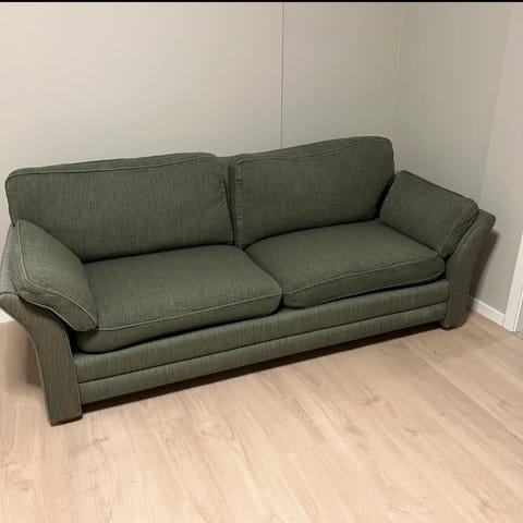 Selger en Ekornes Stockholm sofa i flaskegrønn tekstil.