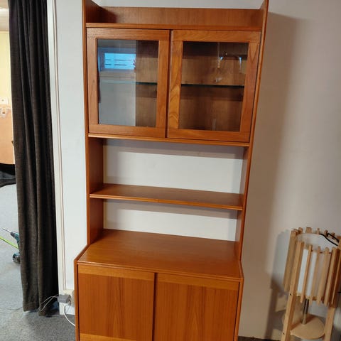 Pent vitrineskap med 2 dører med klart glass samt 1 glasshylle. Veldig lite bruksspor.
