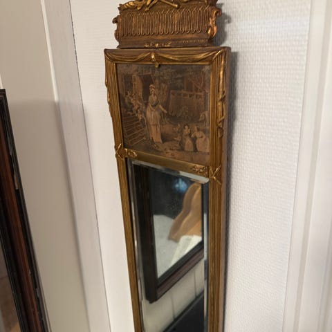 Gammelt speil med reklame