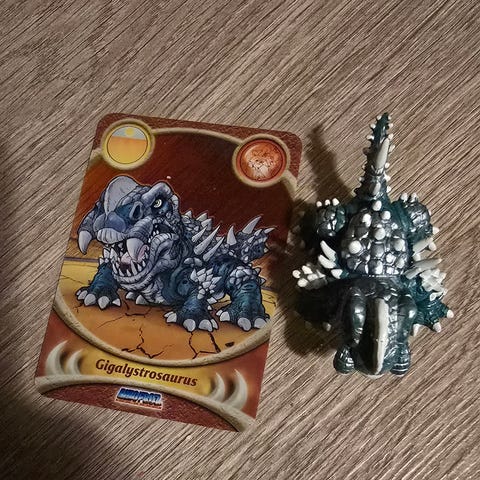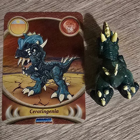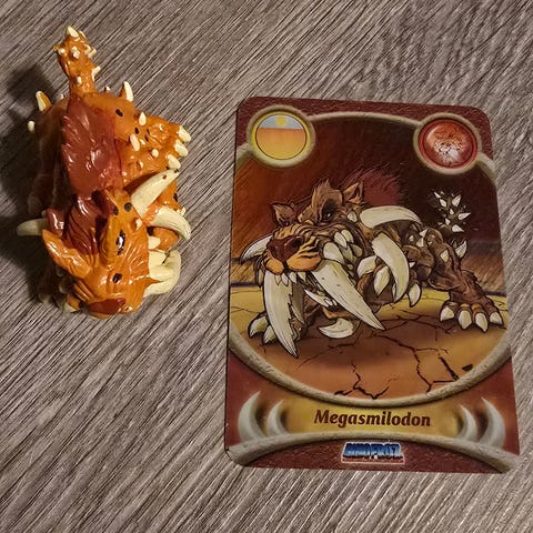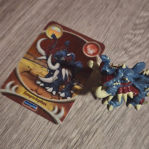 Samleobjekt: Hver figur kom opprinnelig med et tilhørende samlekort (som vist på bildet) som inneholder statistikk for lek og kamp, for eksempel "Cleverness", "Strength" og "Agility".