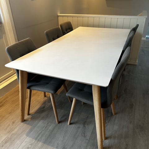 Spisebord med 4 stoler i heltre