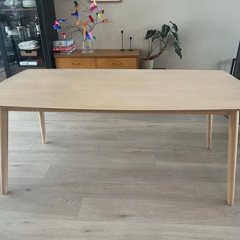 Pent brukt spisebord i heltre oljet eik med 4 stoler.