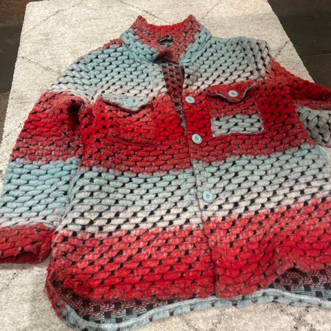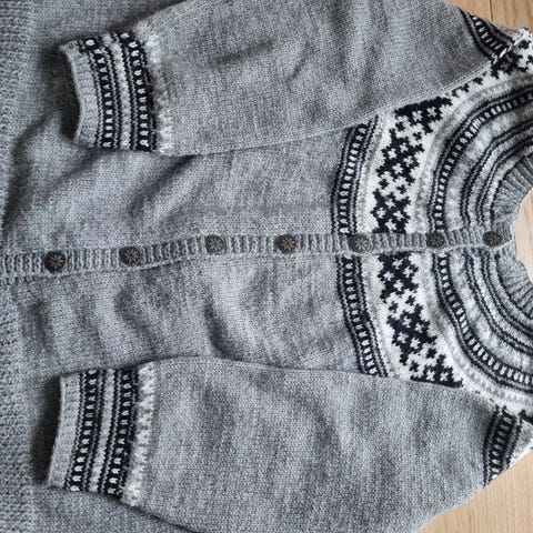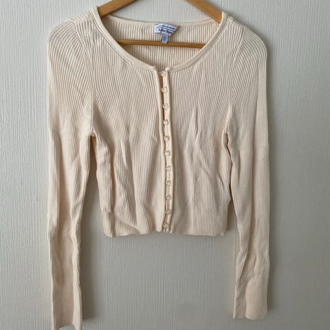 & Other Stories cardigan for dame i størrelse L. Cardiganen er brun med mønsterdetaljer og har knappelukking foran. Laget i bomull (mulig annet også, er ingen lapp) egnet som hverdagsplagg eller som et ekstra lag på kjølige dager.