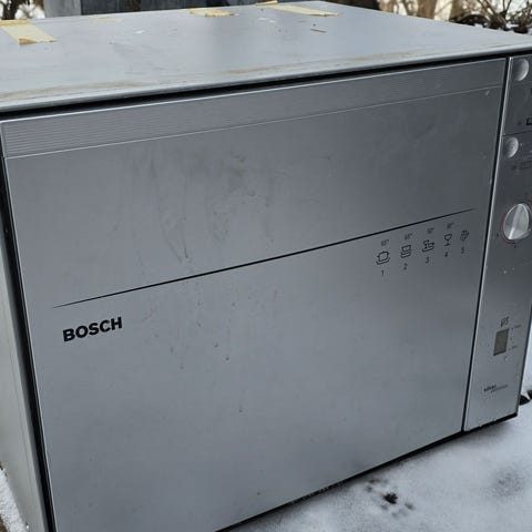 Electrolux benkoppvaskmaskin i hvit utførelse. Kompakt modell som plasseres på benk eller i nisje, egnet for mindre kjøkken eller der det ikke er plass til fullstor oppvaskmaskin. Frontpanel med display og betjeningsknapper. Innvendig kurv for tallerkener, glass og bestikk. Maskinen leveres med tilkoblingsslange og strømledning synlig på bildene. Ytre toppflate har synlige merker/skader, se bilder for tilstand.