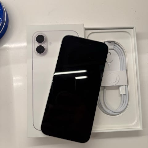 Selger en iPhone 16 Plus i svart med 256 GB lagring.