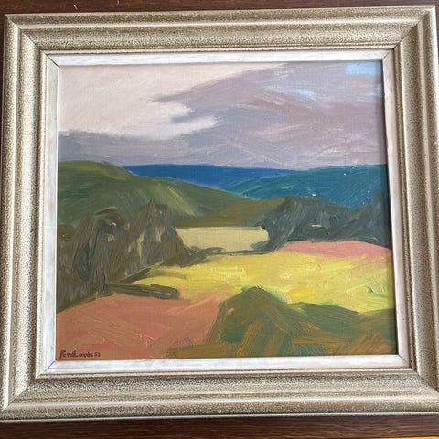 Avstemte farger. Rolig motiv. Små malerier, kan henge hvor som helst.