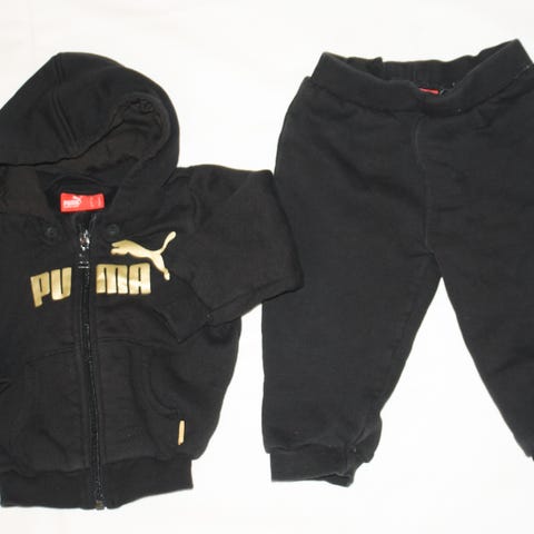 Grå og gul Puma hettegenser for barn i størrelse 68.