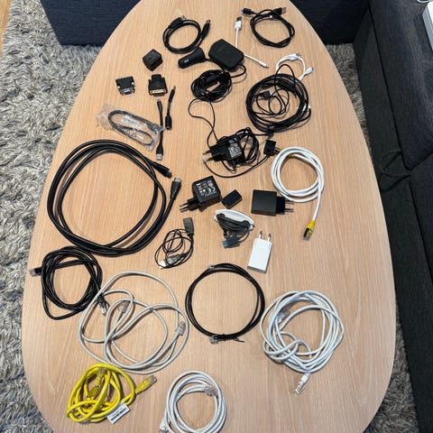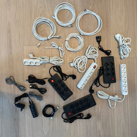 Diverse kabler i ulike lengder selges samlet.