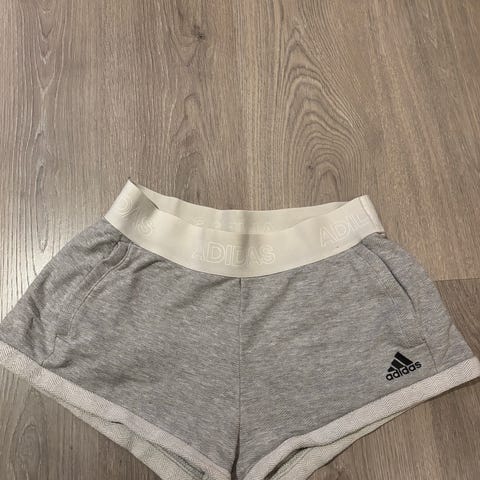 Adidas shorts for dame i størrelse S. Shortsen er flerfarget med mønster og har elastisk linning. Materialet er polyester, som gir et lett og funksjonelt plagg. Passer til fritid, trening eller annen aktivitet der korte bukser er egnet.
