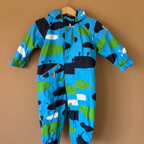 Fóret regndress str. 74 inkl. lue og ullsokker selges for 100 kr. Det er pent brukt og i god stand. Dressen er i merket ME TOO. Du får med én lue og ett par ullsokker på kjøpet. Jeg kan gjerne sende, mot at kjøper betaler frakt.