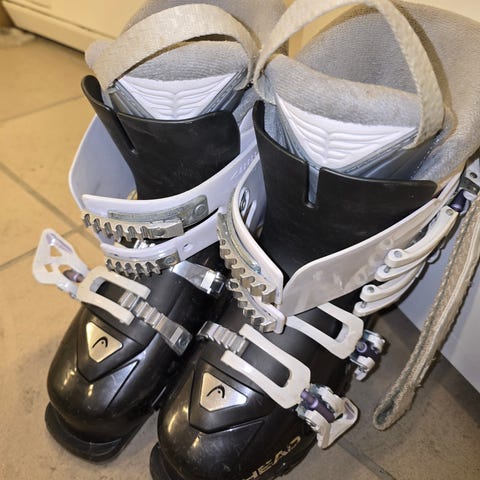 Selger et par veldig pene Lange Venus alpinstøvler i mondopoint størrelse 26,5. Dette skal tilsvare ca. str. 41, men jeg bruker normalt 40, og disse er blitt litt for små etter to graviditeter, så jeg vil tippe at de er mer lik str. 39. Vil anbefale at de prøves for sikkerhets skyld.