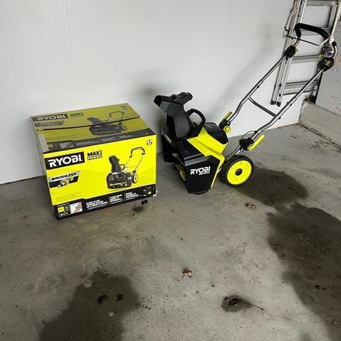 Kun åpnet, ladet batteri og testet på 30 kvadratmeter før jeg fant ut at min gamle snøfreser allikevel ikke var stjålet 😅