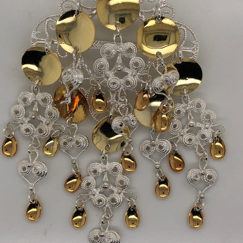 Sølje i ekte sølv fra Vossasylv. 6,5cm diameter lyst sølv med 12 forgylte heng.