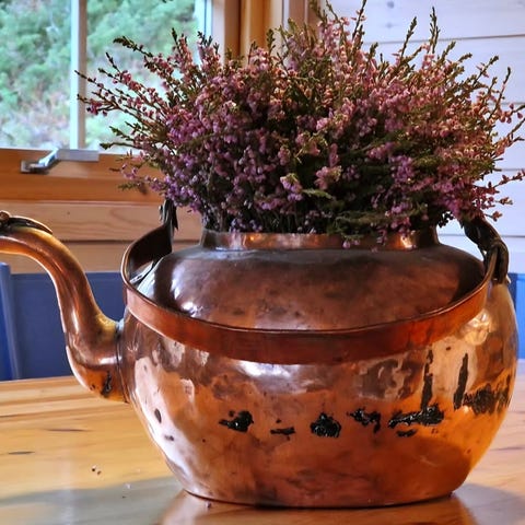 Antikk kobberkanne med hengslet lokk – ca. 1800–tidlig 1900-tall
