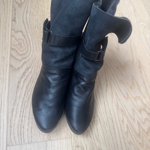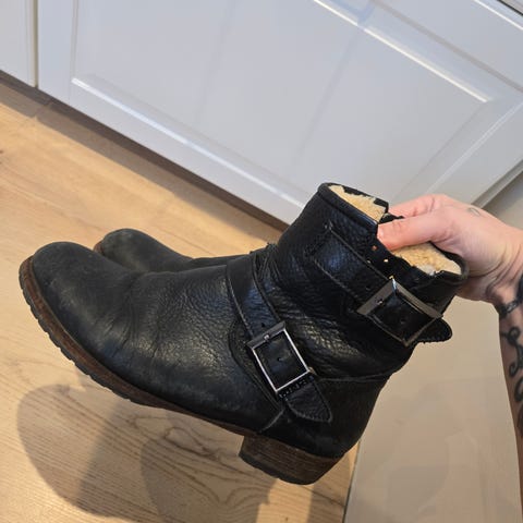 Svarte vintersko i skinn fra Blackstone. Foret med saueskinn.
