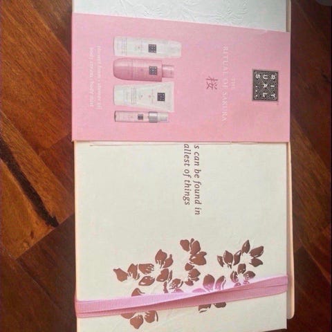 Rituals The Ritual of Sakura notatbok i rosa og hvit.